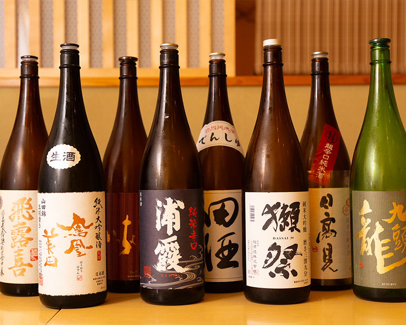 日本各地より厳選した日本酒や焼酎とのマッチングをじっくりお楽しみください。