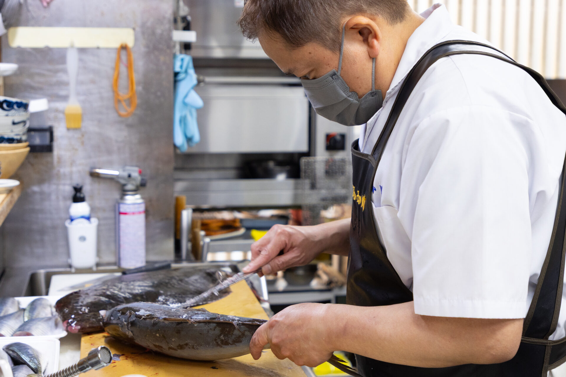 柏市場で店主が直接吟味した、その日特に良いと思った魚をご提供。その時季ならではの魚介類をご提供しているので程よく脂がのっており、口の中にいれるととろけるような味わいが魅力的です。ご提供しているお刺身は一切れがとても大きくて分厚く、食べ応え抜群のボリューム。優しい味わいの煮物もおすすめです。